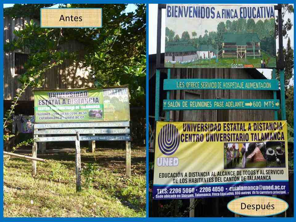 El pasado mes de Diciembre el Centro universitario Talamanca en coordinación con estudiantes del Grupo Ecológico de este centro y representantes de la Asociación ACIDECARE, realizaron tres jornadas de trabajo donde el objetivo era reparar la armadura del letrero donde estaba ubicada la información del Centro Universitario Talamanca y de la Asociación. Se realizó la pintura de un mural informativo de los servicios que ofrece la Asociación ACIDECARE y se trabajó en la armadura de la manta de la Universidad. Este trabajo es un ejemplo a seguir ya que podemos ver que si trabajamos en equipo todo es posible. A continuación se ofrecen imágenes de las jornadas de trabajo.