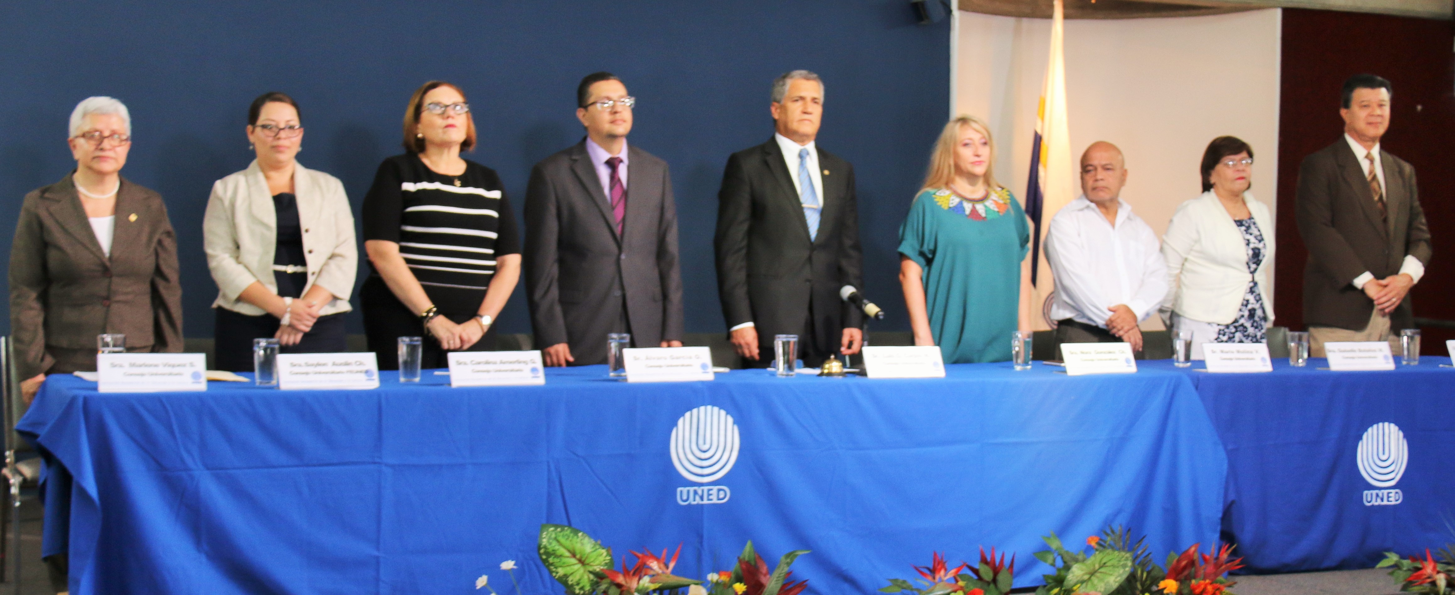 En un acto presidido por el Consejo Universitario y con la concurrencia  de una numerosa cantidad de funcionarios, Luis Guillermo Carpio, rector de la UNED y presidente del órgano colegiado, manifestó: “conmemoramos el noveno año de haber recibido el Benemeritazgo, en un momento crucial para la universidad pública costarricense, un momento en que la sociedad trata de repensarse”.