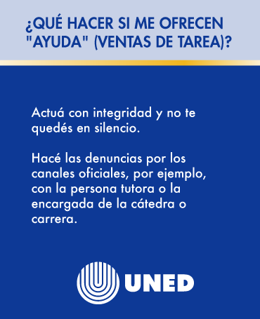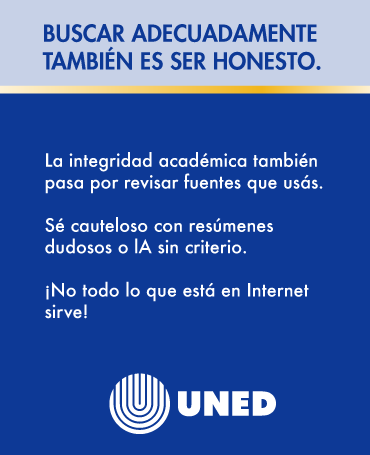 En la UNED creemos que tu integridad académica y tu esfuerzo constante son la base de tu éxito estudiantil. Durante estas semanas te vamos a compartir consejos, recursos y reflexiones para que sigás creciendo con ética, compromiso y confianza en tu trayectoria universitaria. ¡Acompañanos en esta campaña y construyamos una cultura de honestidad y logro académico!